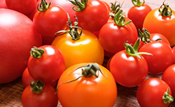 リコペンはトマトやピンクグレープフルーツなどに多く含まれる。赤い色の色素成分です。トマトを多く摂取する地域では、前立腺ガンや肺ガンが少ないことが報告され、注目されています。