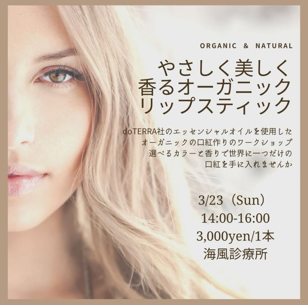 doTERA社のエッセンシャルオイルを使用したオーガニックの口紅作りのワークショップ。 選べるカラーと香りで世界に一つだけの口紅を手に入れませんか。 1本¥3,000円(材料費込み・1ドリンク付き) 申し込み方法は、メールまたはお電話にて受け付けております。 0834-33-0891(カフェ:担当上野) ✉:info@numatest.monnet.site
