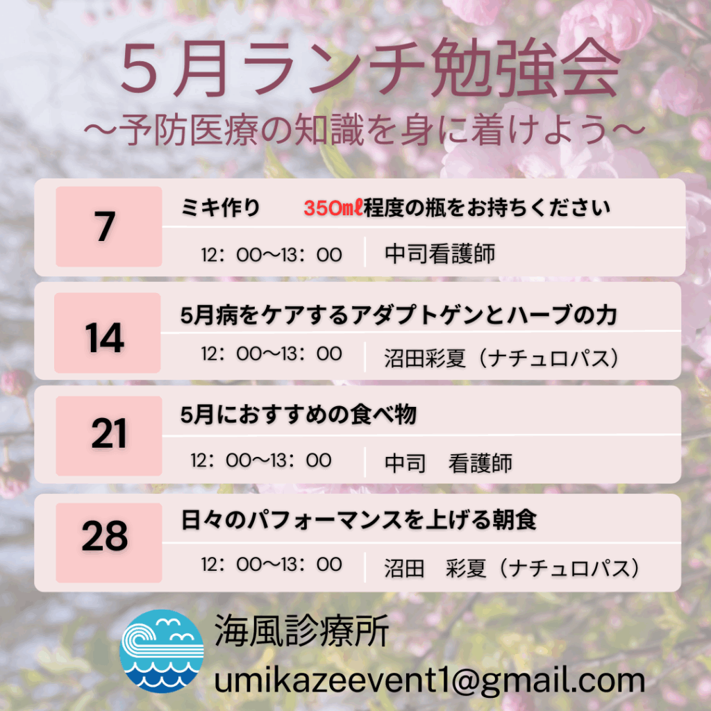 5/7ミキ作りにご参加の方は、350ml程度の瓶をお持ちください。皆様のご参加お待ちしております。